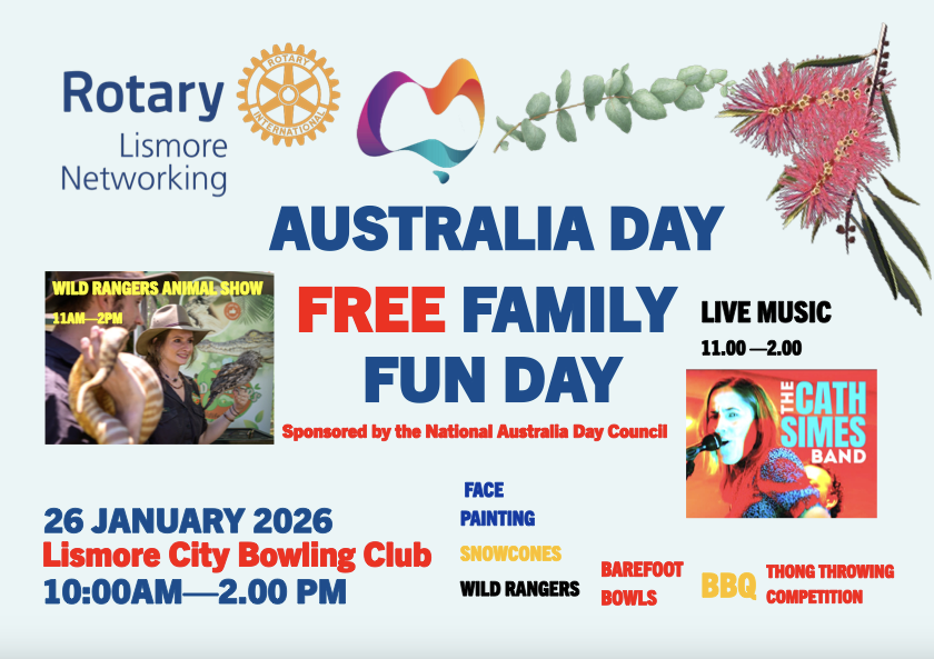 Rotary Club of Lismore Networking is holding a Free Family Fun Day on Australia Day.