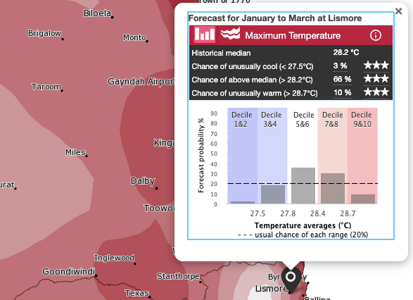As locals know, February and March are the wettest months in Lismore and the Northern Rivers. That trend looks set to continue with the BoM's long-term weather forecasts.