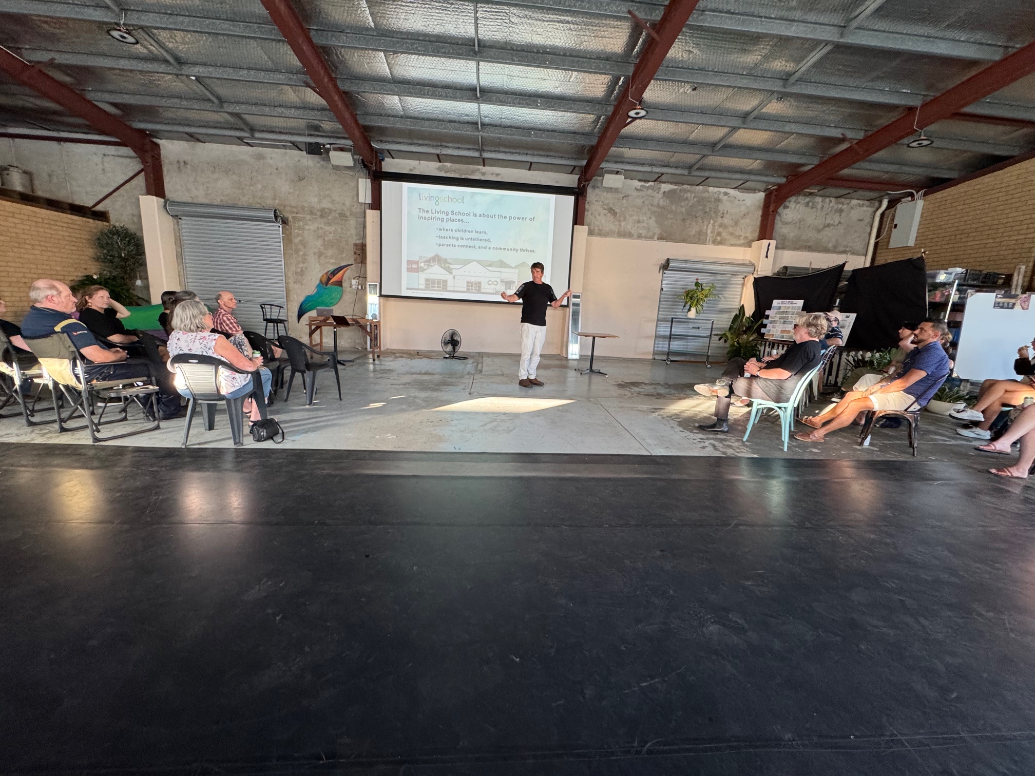 (The Living School's founder John Stewart talks through his CBD plans to interested members of the community last week at 10 County Lane)