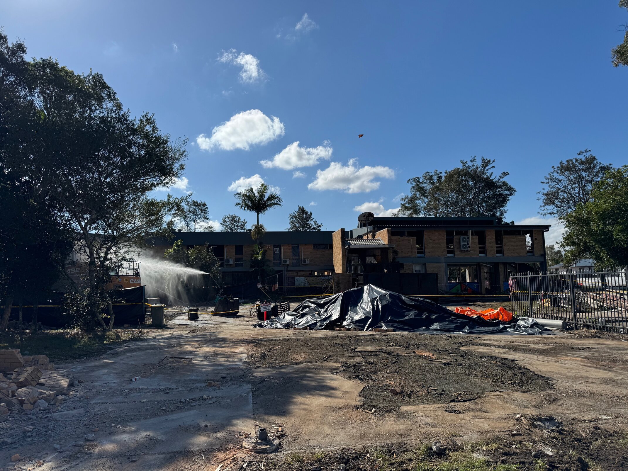 Meanwhile, the bulldozer is at work demolishing the South Lismore Primary School (PS).
