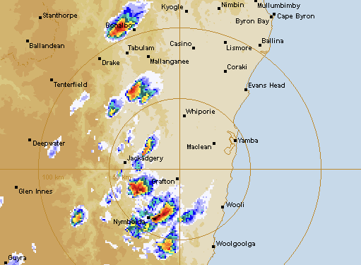 Severe thunderstorms are likely to produce large hailstones and damaging winds for a large area of the north coast over the next several hours, including Lismore, Ballina, Byron Bay, Casino, Kyogle, Grafton, Coffs Harbour, Armidale, Tenterfield, Glen Innes, and Inverell.