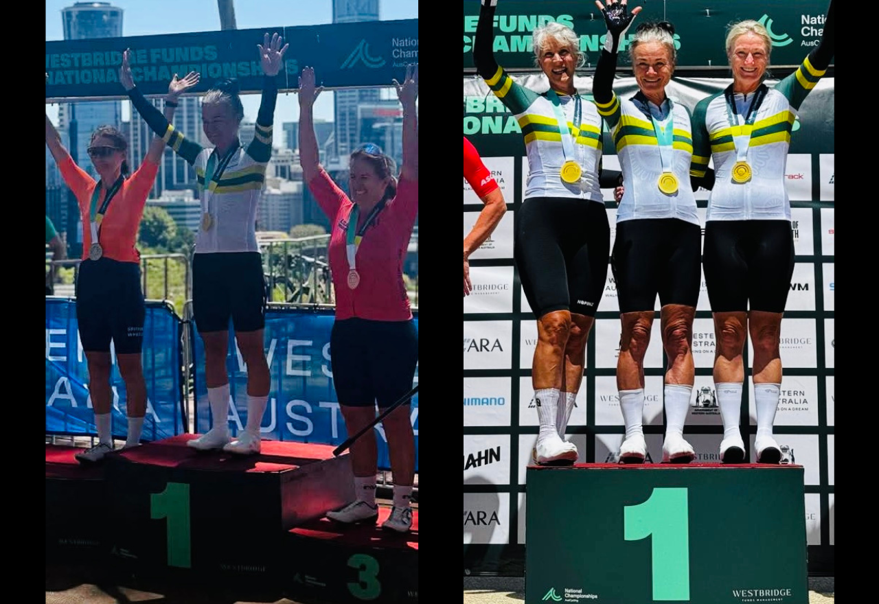 Rachel Pearson on the top step at the Cycling Nationals in Perth. Photo: BBCCByron Bay – January 16, 2026 — Byron Bay Cycle Club (BBCC) is celebrating a remarkable achievement as club president Rachel Pearson claimed three gold medals at the 2026 AusCycling Road National Championships held in Perth.