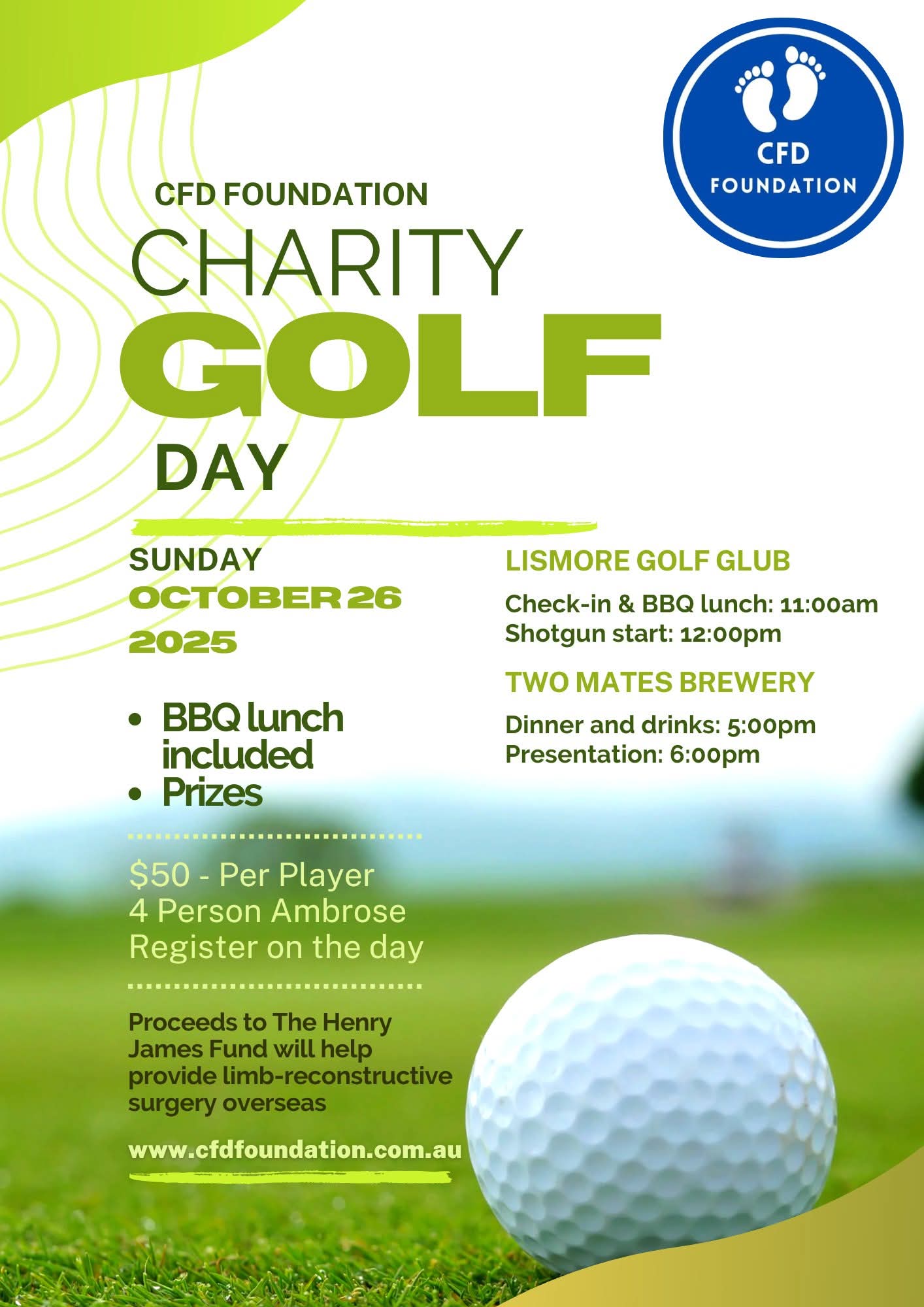 The CFD Foundation Charity Golf Day will take place at the Lismore Golf Club on Sunday, October 26.