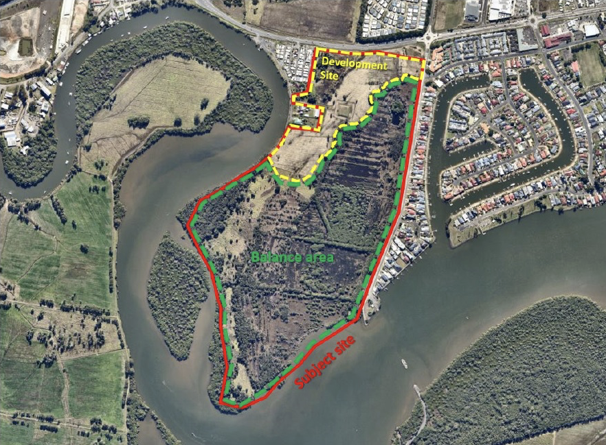 The 56.76-hectare low-lying site in West Ballina comprises two lots and is bordered by the confluence of Emigrant Creek and the Richmond River. The development application was considered by the Northern Regional Planning Panel (NRPP) on 30 November 2023, and was refused by them on 11 December 2023.