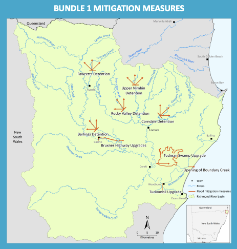 Bundle 1. Fawcetts Detention, Barlings Detention, Rock Valley Detention, Upper Nimbin Detention, Corndale Detention, Tuckean Swamp Upgrade, Opening of Boundary Creek, Bruxner Highway Upgrades, Tuckombil Upgrade.
