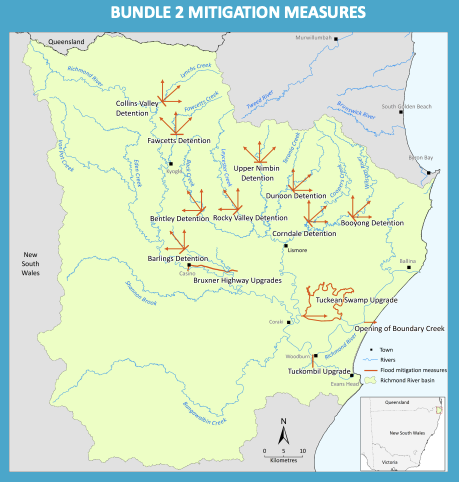 Bundle 2. Fawcetts Detention, Barlings Detention, Rock Valley Detention, Upper Nimbin Detention, Corndale Detention, Tuckean Swamp Upgrade, Opening of Boundary Creek, Bruxner Highway Upgrades, Tuckombil Upgrade, Collins Valley Detention, Bentley Detention, Dunoon Detention, Booyong Detention.