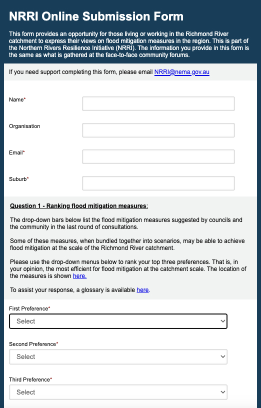 Round two of the community consultation process started with suggestions from the first round of consultation, in which 36 flood resilient measures were funded out of the $150 million NRRI, like the Browns Creek pump upgrades, clearing drains and upgrading Fishery Creek and Canal Bridge in Ballina to four lanes.