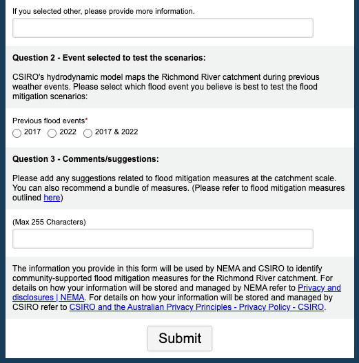 One complexity in the potential flood modelling scenarios is selecting the largest floods for each town in the Richmond River catchment. These are called climates. For example, 2008 was an extreme flood for Kyogle and Casino but not for Lismore. Lismore was affected more in 2017 and 2022.