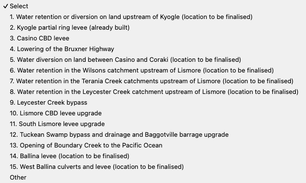 "As we have said right from the beginning, everything is on the table, whatever the community says, we will do if it makes sense to do for large floods, because the main terms of reference we have is to look for flood mitigation scenarios for large floods. For example, for Lismore 2017 and 2022.