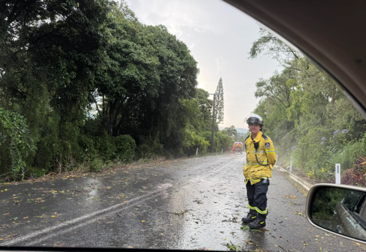 New Ballina Road shorty after the road. Photo: Lismore What's Happening.This afternoon's storm cancelled the 2024 Carols in the Heart, blew trees and branches down, left debris on Lismore's roads and left 10,600 homes and businesses without power.