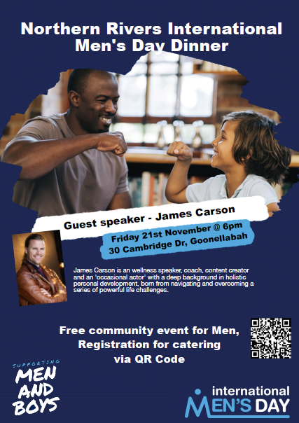 In Lismore and the Northern Rivers, it is also a time when men get together to socialise, have a good time and talk through the Salvation Army Northern Rivers International Men's Day Dinner.