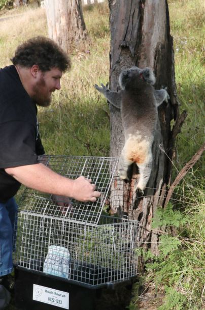 (Volunteer Luke Kane releases a koala)