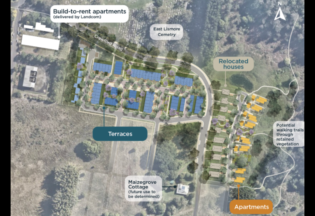 Landcom expects to turn the first sod in the middle of 2026, pending approval from Lismore City Council. The DA (development application) will be lodged following the community consultation and the finalisation of the Master Plan.