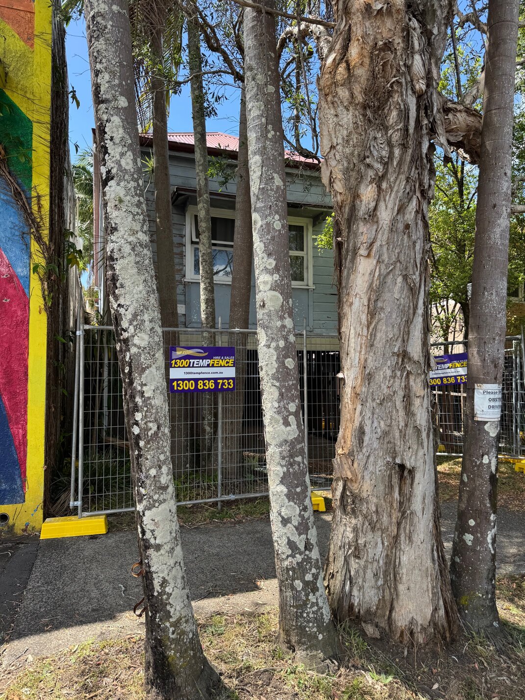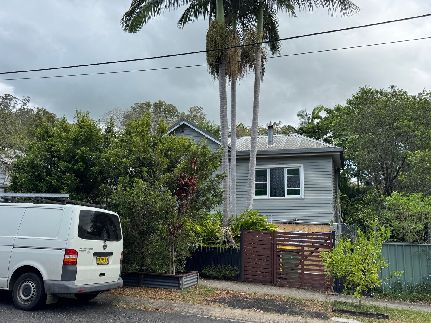 (An example of a house that is very close to another building with established trees at the front of the property in North Lismore)