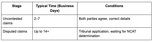 Disputes over deductions or damages result in a different timeline. If your landlord or agent disputes your claim, Fair Trading holds the bond and informs both parties. Each party receives written notice, then typically has 14 days to apply to the NSW Civil and Administrative Tribunal (NCAT). You may need to provide evidence for cleaning, repairs or unpaid rent in such disputes.