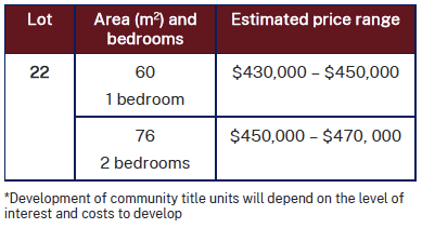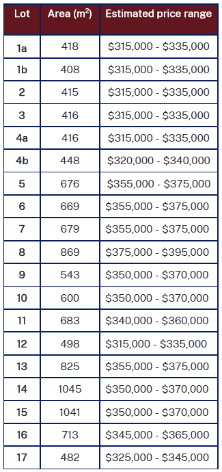 The blocks of land were valued by an independent valuer, based on current market conditions. The cost is influenced by position as well as size. They range from $275,000 to $395,000, and are outlined below;