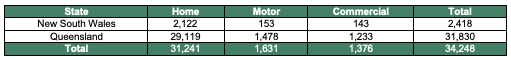 "Claims numbers are increasing significantly each day, with more than 34,000 claims now received by insurers, the large majority from Queensland."