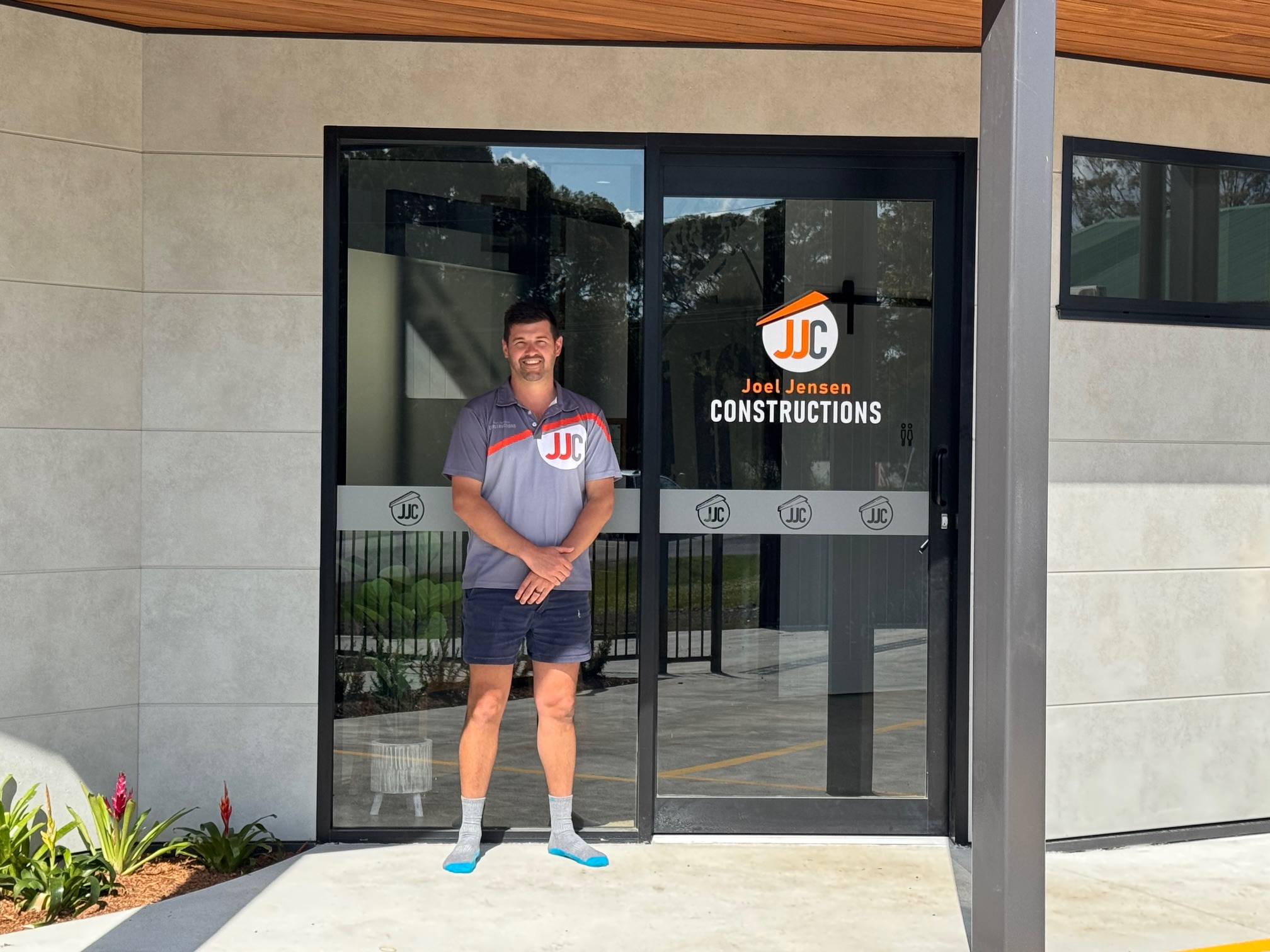 The family company, Joel Jensen Constructions (JJC), is co-owned by Joel and his wife, Brittany. They started in 2015 and, until recently, were operating out of a rented premises on Elliot Road, South Lismore.
