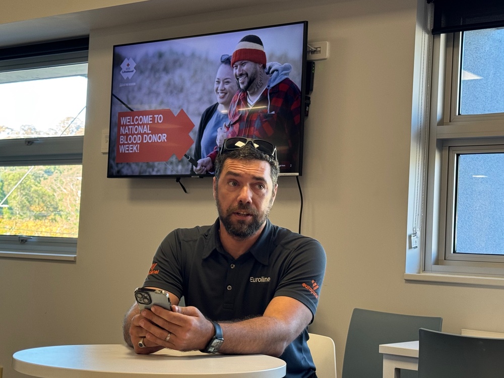 (Kieran Middleton giving a talk to Lifeblood donors today)