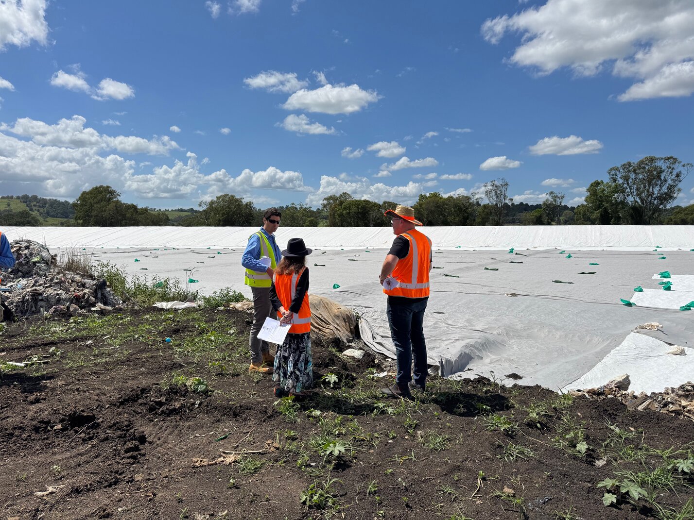 (Nick Baker talks to Janelle Saffin, Minister for Recovery, and Steve Krieg, Lismore Mayor about Cell 2B)