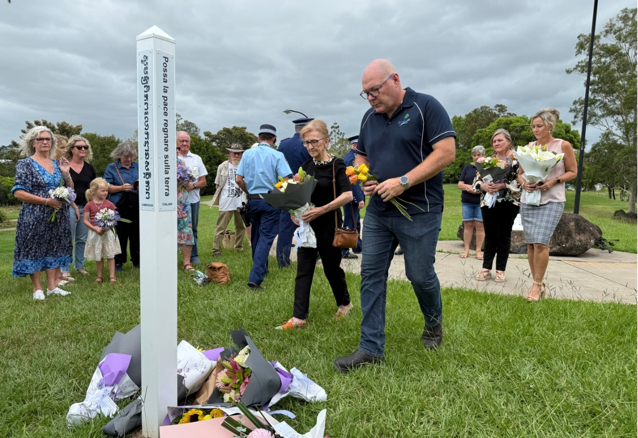 As flowers were laid at the base of the Peace Pole, the mood remained quiet and reflective. In a city shaped by our resilience, the ceremony at the Lismore Peace Pole served as a reminder that even in moments of profound grief, people can come together in hope, care and a shared call for peace to prevail.