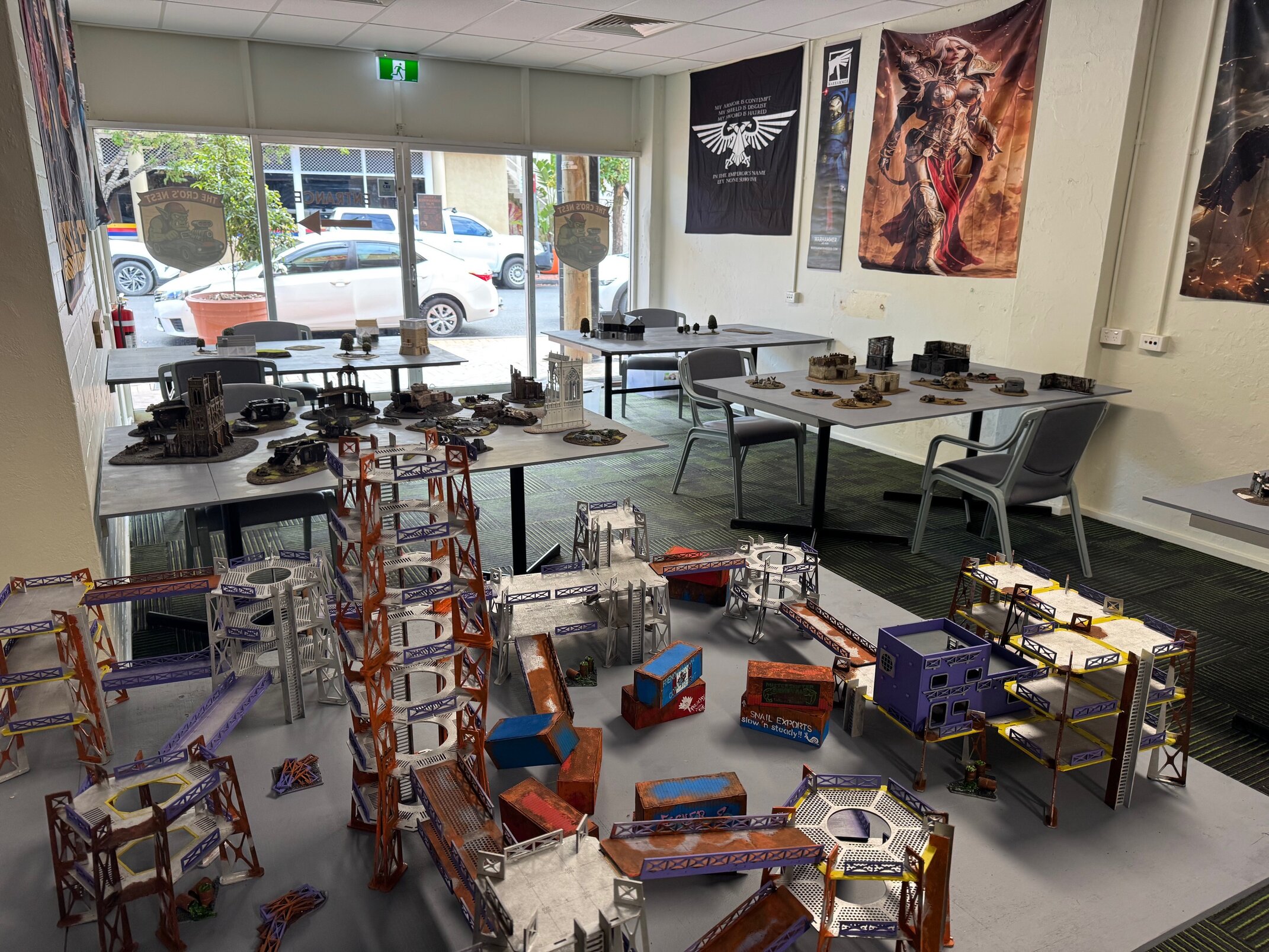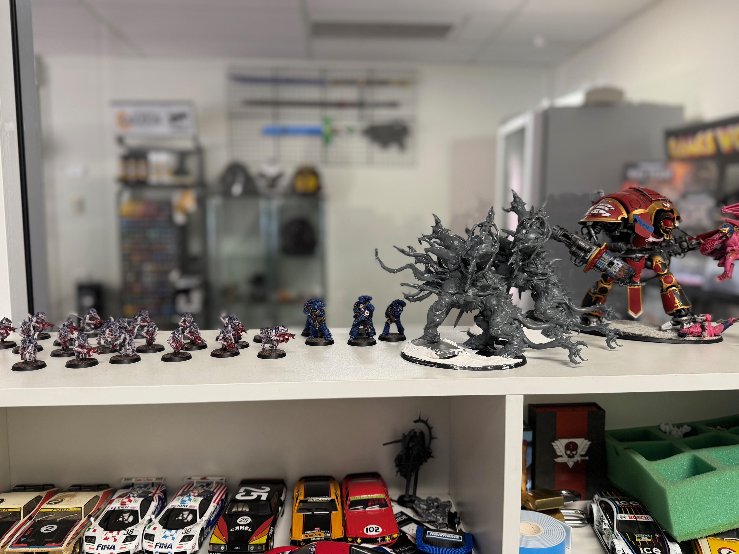 The gaming room next door is set up for Warhammer, Necromunda and Blood Bowl tabletop games, which involve tabletop miniatures.