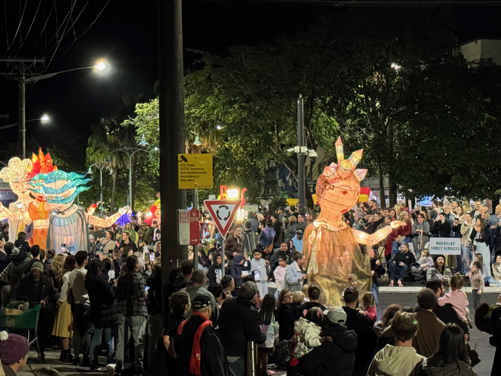 Another impressive tribute to the people of Lismore and the Northern Rivers who rugged up and hit the streets of the CBD. People took every vantage point available on Molesworth Street, Magellan Street and Dawson Street. Families lined the sidewalks and roundabout islands waiting for the 2025 Lismore Lantern Parade to walk by.