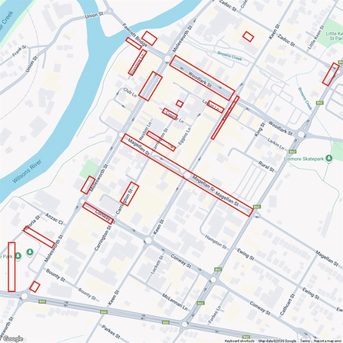 For more information, visit: https://www.lismore.nsw.gov.au/Building-and-planning/Flood-Restoration-Portfolio/Roads-and-bridges/FR-Lismore-CBD-Drain-Clearing.