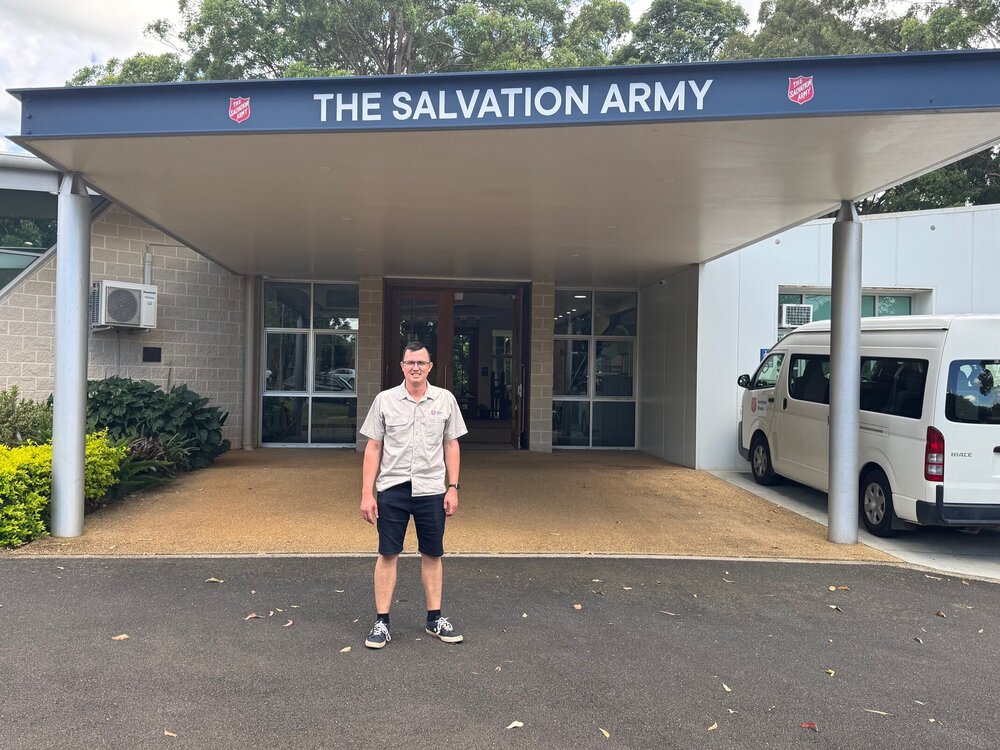 (Captain Philip Sutcliffe outside of the Salvation Army building in Goonellabah)