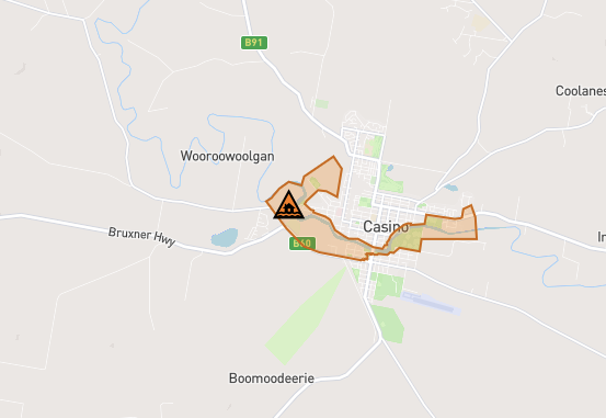 The NSW SES is advising people in low-lying parts of Casino near the river, including Lennox Street, West Street, Stapleton Avenue, Gilby Street, Diary Street, Richmond Street, Canterbury Street and Ferguson Street to PREPARE TO EVACUATE due to current rising minor flooding.
