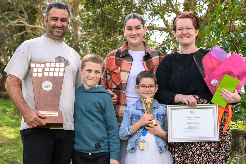 Willow was presented with the 2025 Suzie Levot Memorial Our Kids Bravery Award at the Our Kids Day Out festival in Ballina last Sunday, 4 May.