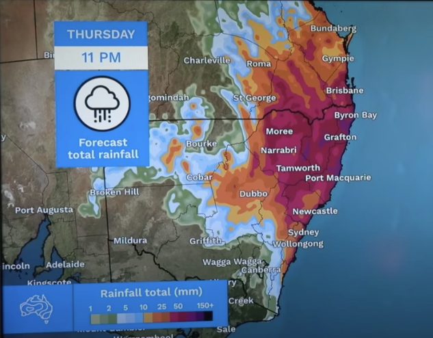 For Lismore and the Northern Rivers, the situation is slightly lower than our southern neighbours. At 6 o'clock last night, the BoM was forecasting up to 120mm throughout Wednesday, Thursday and Friday, by 10pm that had increased to 150mm. The lower end of that scale is 18mm.