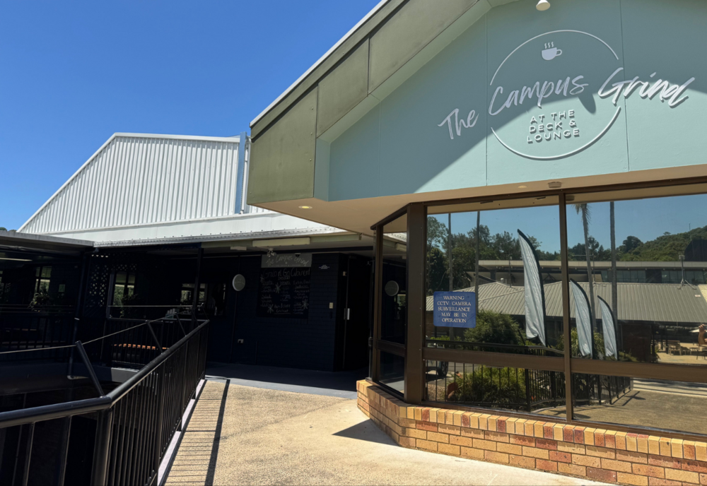 Southern Cross University (SCU) has a new cafe and community space for students and the general public part of the Deck & Lounge opposite the Goodman Plaza, the Campus Grind.