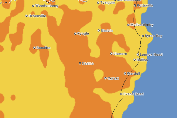 The warnings are in place for Tuesday, although maximum temperatures will drop to 29 degrees for Lismore and 32 degrees for Casino and Kyogle.