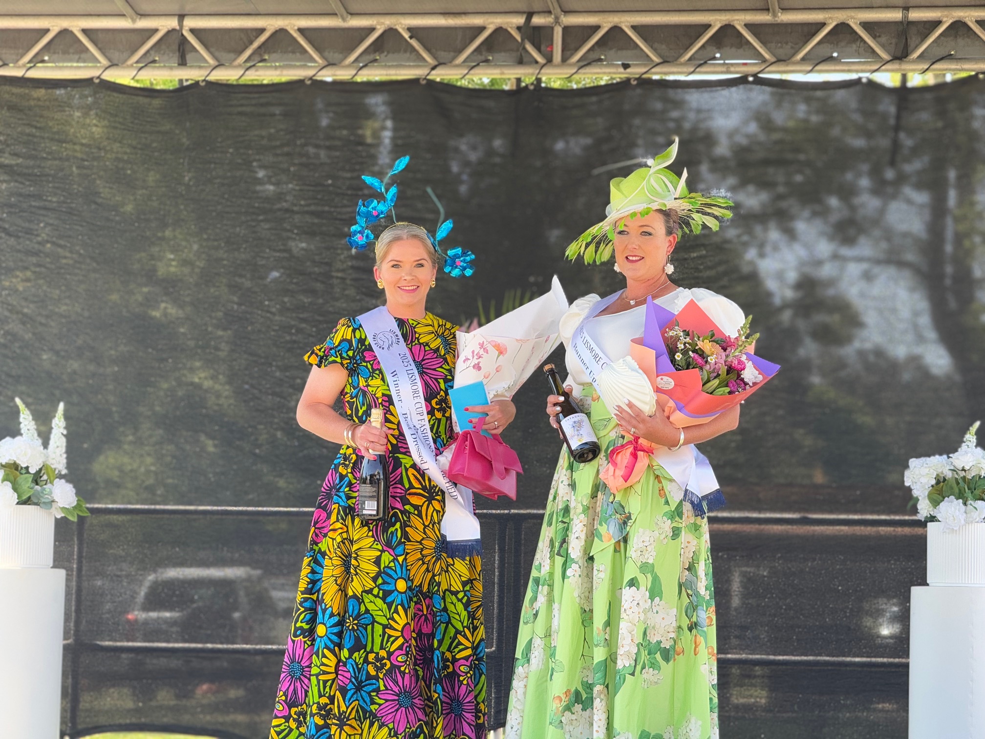The Under 40s winner was Haylee Martell (left above) wearing a Jettah and Till dress and millinery, with Amy runner-up also wearing Jettah and Till millinery.