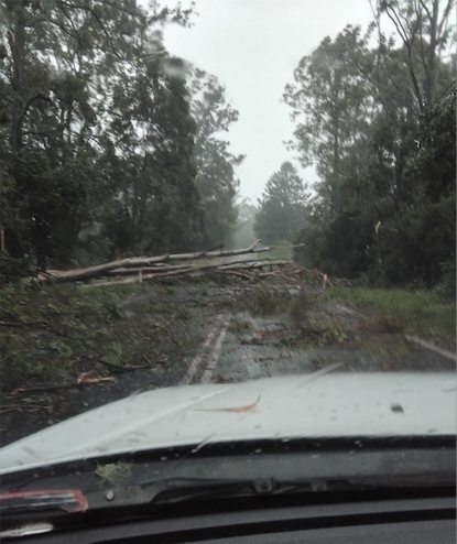 (Trees down on Kyogle Road earlier today. Photo: Annemarie Spicer)