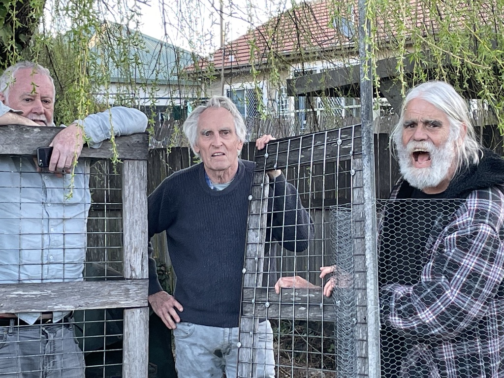 (Steve, John and Paul at the chook pen)