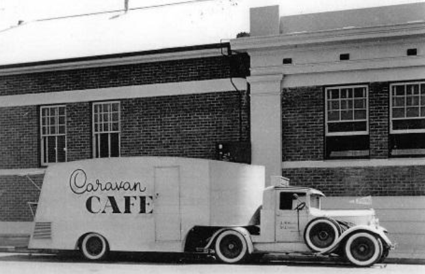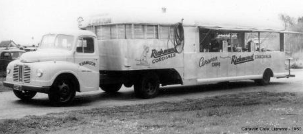 Jack made Lismore's Caravan Cafe from marine ply and cut a Graham-Paige car down to tow the new mobile business.
