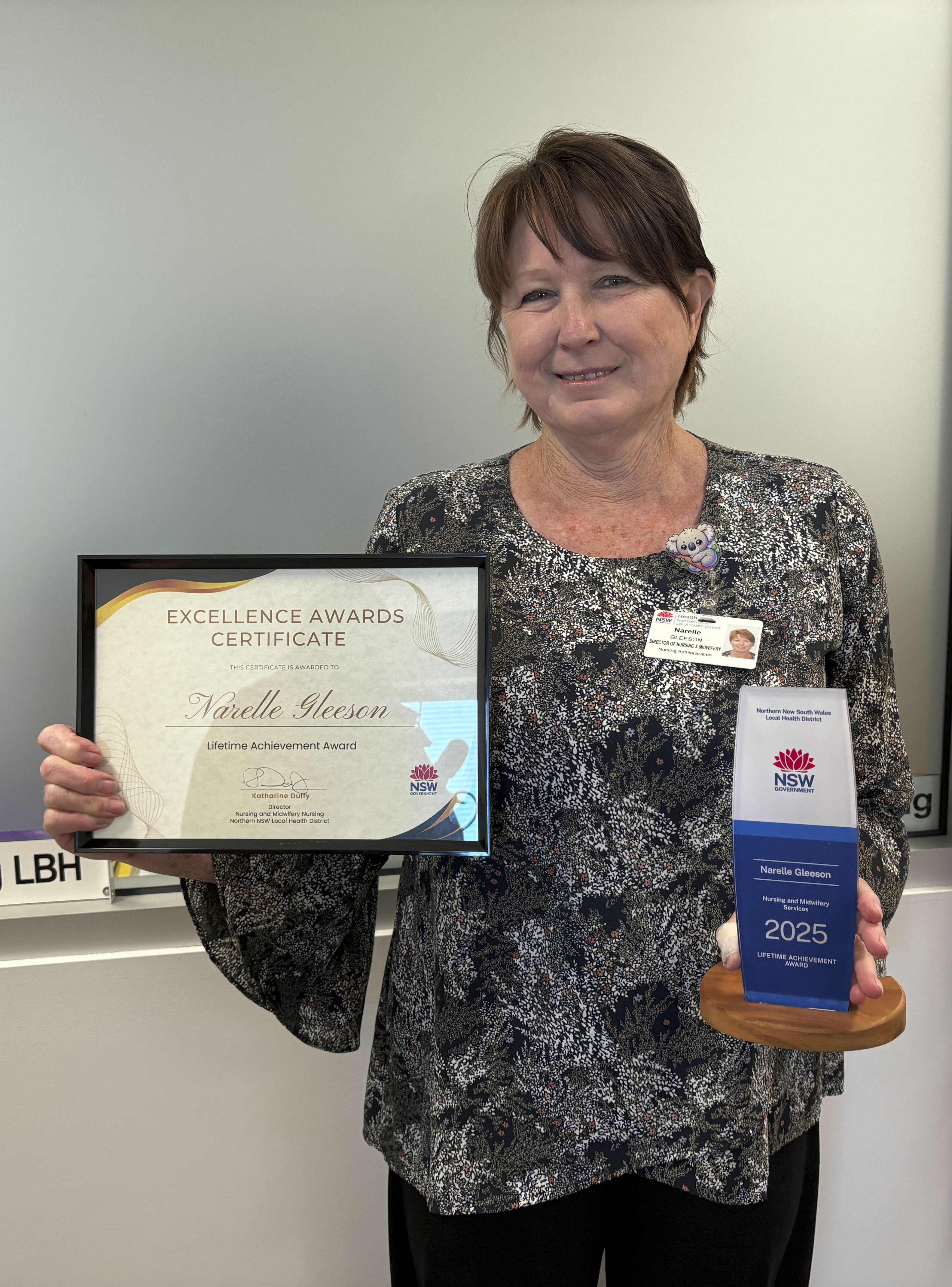 Narelle Gleeson, Director of Nursing and Midwifery at Lismore Base Hospital, was recently awarded a Lifetime Achievement Award in recognition of her distinguished 50-year career as a Nurse, Midwife and Director of Nursing and Midwifery. She sat down this week with Darlene Cook to talk about her life, and the many changes she has seen in the nursing profession over those years.