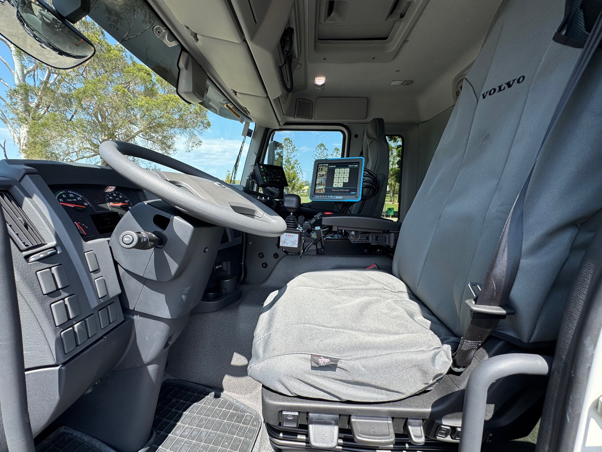 The new Volvo garbage trucks are manufactured in Sweden and then imported into Australia to add the high-tech components, which include making the truck twin steer (right and left-hand drive), the IVMS, and increased safety features in case of an internal fire caused by lithium batteries.