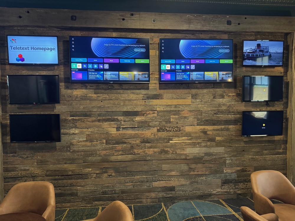 "Right now, the tellie's can come off the wall. It's all old railway sleepers. This floor is designed to come up, it's in squares and taken upstairs very quickly.
