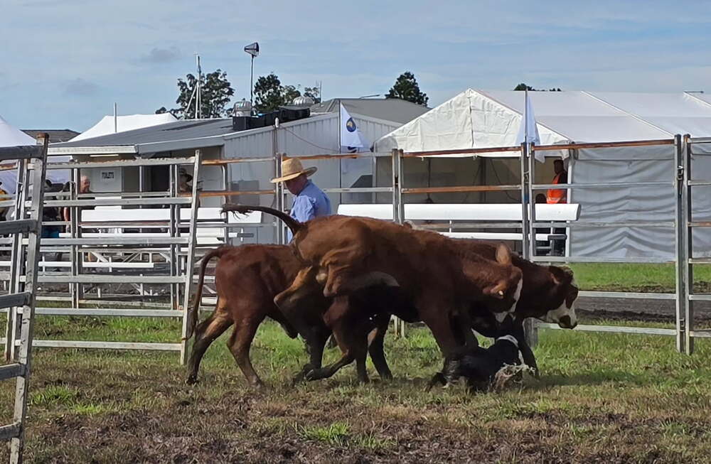 In other areas of Primex, the competition is rife. Down at the dog trials, Butch started the day off, as the commentator said “letting off some steam” as he put his heifers through the yard.