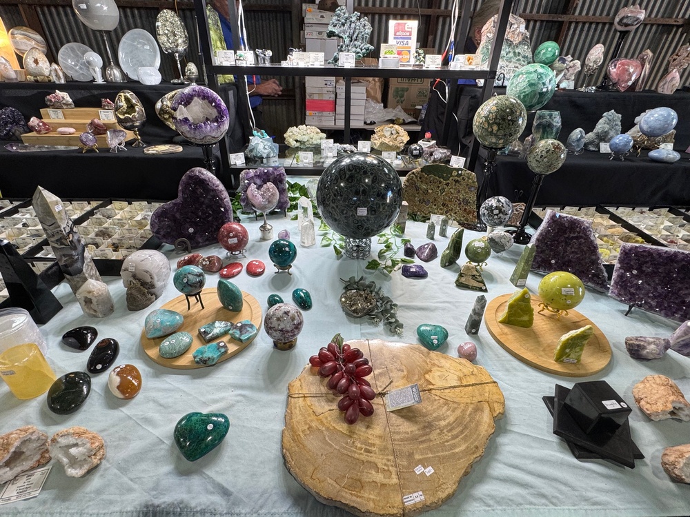 Sure, it was muddy underfoot in places, and boots were the fashion of the day, but the gems, minerals, and jewellery were on display, and keen customers were looking for items that would look good in the home or on the body. And there was something for every budget, from $2 to $7,000.