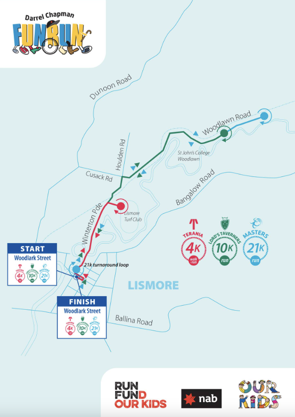 The run will begin on Woodlark Street, turn right into Molesworth Street and continue along Winterton Parade and Woodlawn Road, with runners looping back near the railway bridge on Numulgi Road.