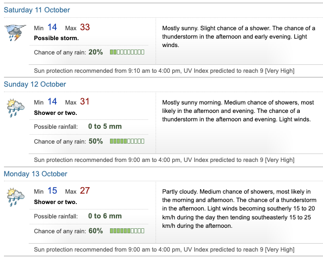 The weather is looking like a mixed bag this weekend, the last of the spring school holidays.