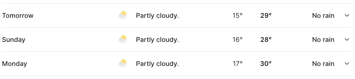 The Bureau of Meteorology says it will be partly cloudy for both days, with maximum temperatures of 29 and 28 degrees.