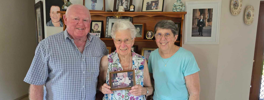 Thelma's eldest son, John and his wife Barbara. Thelma holds a photo of her mother, Gertrude Latham, who passed away in 1999 at the age of 105!