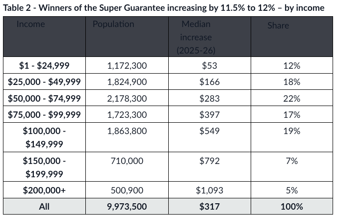 The Superannuation Guarantee rate will rise from 11.5 per cent to 12 per cent, meaning an extra $317 in super contributions will be paid to the average Australian worker next financial year.