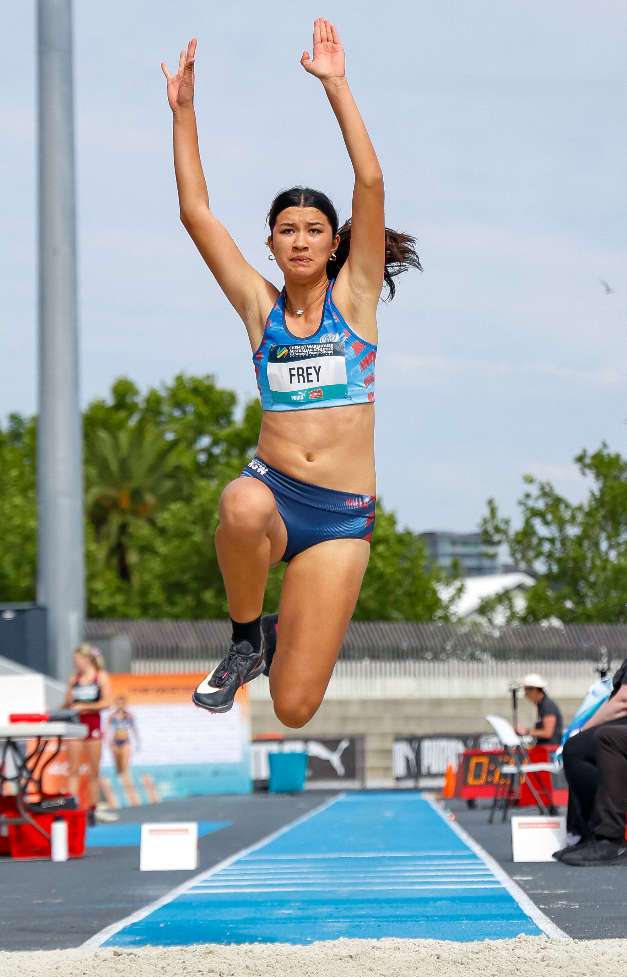 Having won her first National title aged 14 with a leap of 11.75m and backing it up last year, Frey was ready to earn the three-peat.
