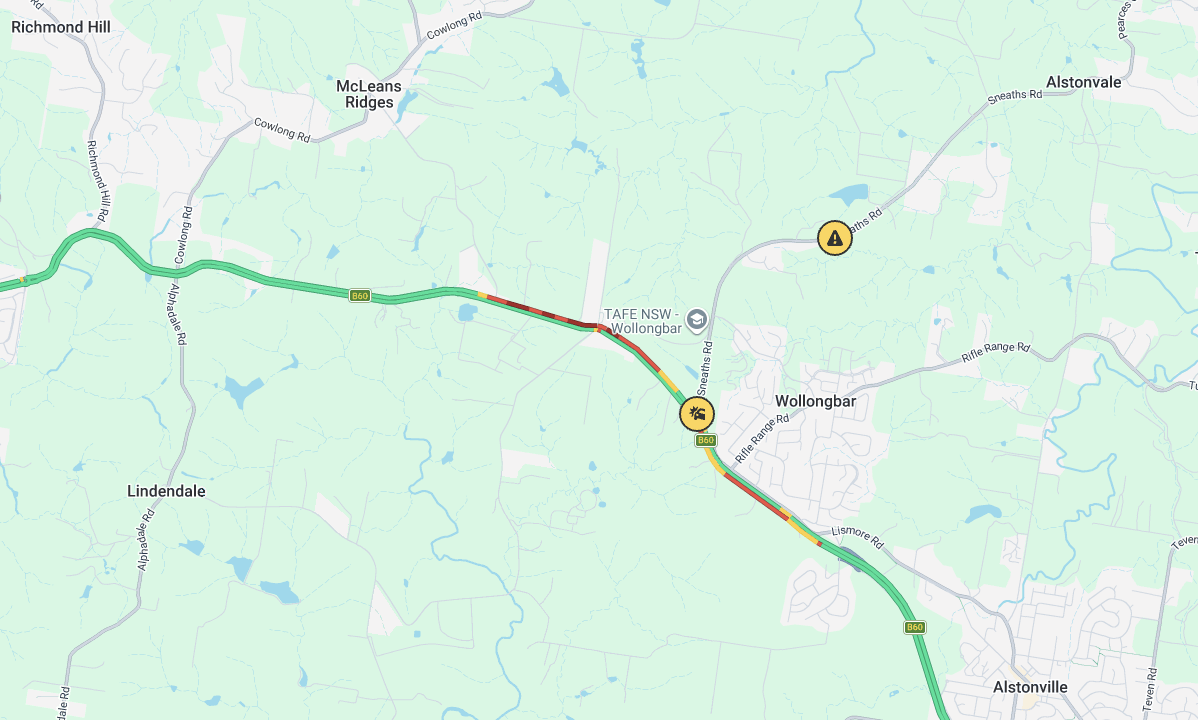 A two-car crash on the Bruxner Highway at Sneaths Road at Wollongbar is causing traffic delays.
